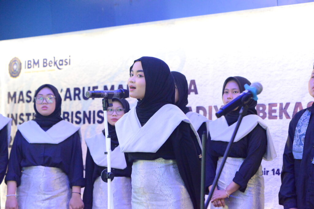 Suasana semakin hangat dengan penampilan UKM Paduan Suara dan SKSB, disusul momen penyematan jas almamater kepada mahasiswa baru. Pada sesi materi, IBM Bekasi berhasil menghadirkan dua narasumber inspiratif, yakni Devan Rachman (Tenaga Ahli Kementerian Koperasi) yang membahas peran koperasi, serta M. Taufan Agasta, S.T., M.T. (Tim Ahli Stafsus Mendikdasmen) yang mengangkat topik kewirausahaan inovatif dan adaptif.